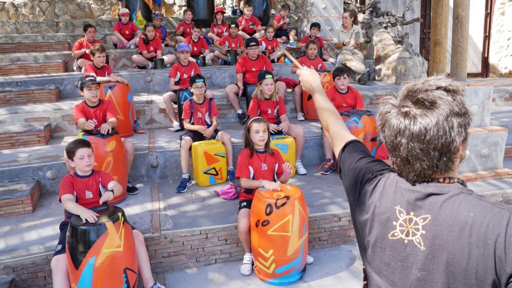 Actividad de día completo que combina una visita guiada a BIOPARC Valencia con un divertido taller de percusión al aire libre.